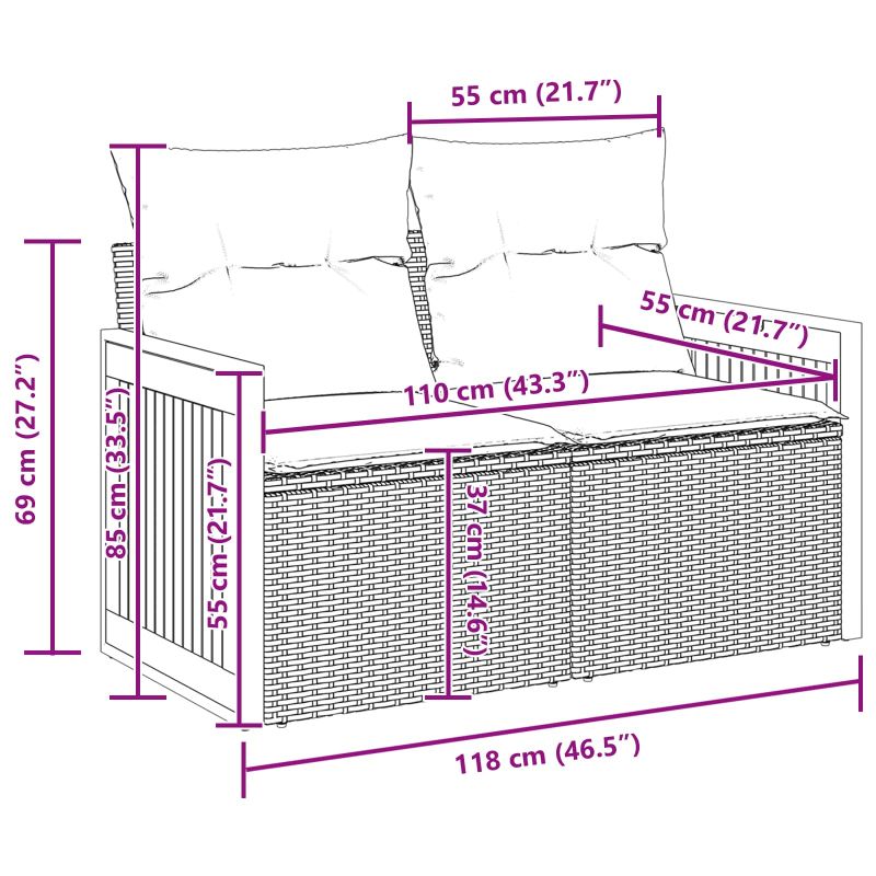 Градински Софа Комплект с възглавница 10 pcs Черно