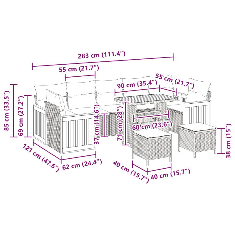 Градински Софа Комплект с възглавница 10 pcs Черно