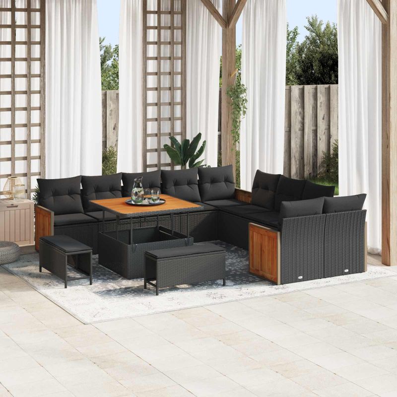 Градински Софа Комплект с възглавница 13 pcs Черно