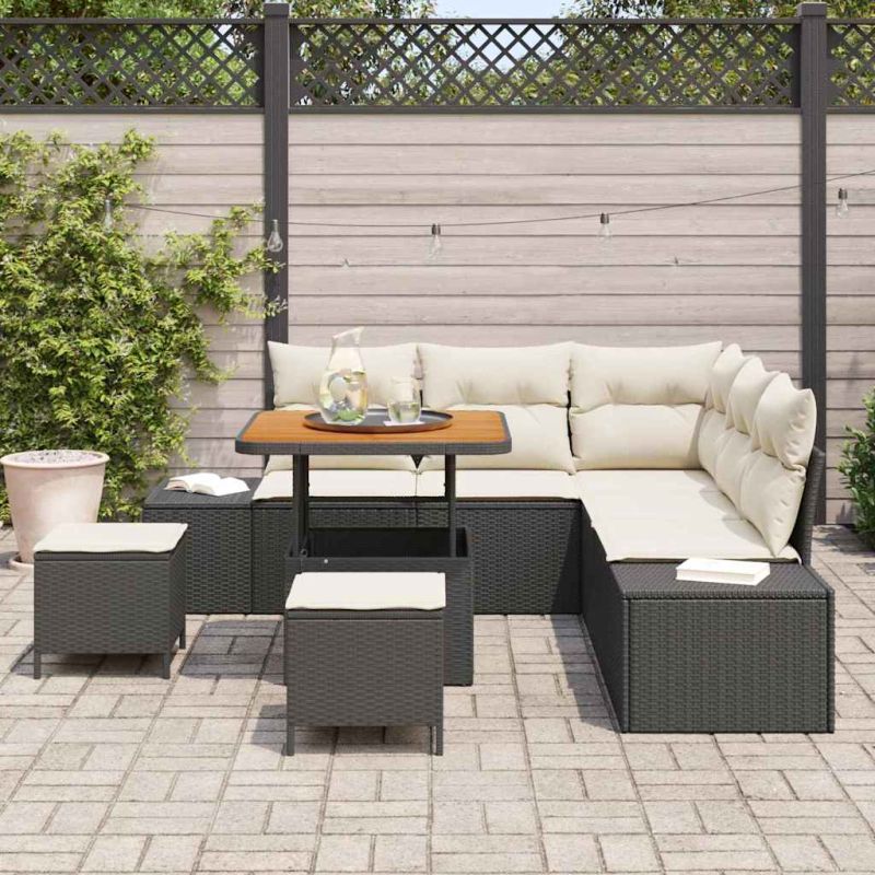 Градински Софа Комплект с възглавница 8 pcs Черно Полиратан