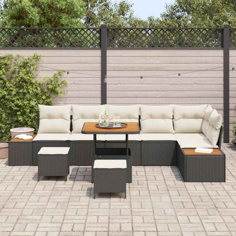 Градински Софа Комплект с възглавница 9 pcs Черно Полиратан