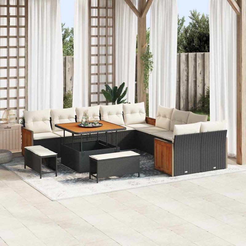 Градински Софа Комплект 17 pcs Черен и кремав полиратан