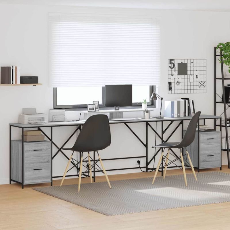 Бюро с чекмедже Сив Сонома 182 x 101 x 87,5 см Инженерно дърво