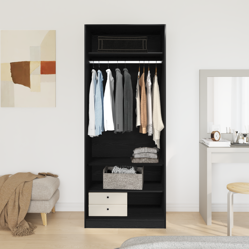 Този модерен гардероб вдига минимализма на ново ниво с чистите си линии и функционалност. Идеален е за тези, които търсят простота и елегантност, а този правоъгълен модел ще пасне на всякакви спални декори, увеличавайки съхранителната гъвкавост. Инженерна дървесина Този гардероб е направен от инженерна дървесина – изглежда елегантно и е супер издръжлив. Материалът е устойчив на температурни промени, така че да остане в дома ви дълго време. Рафтове от плоскости С рафтовете от плоскости, този модул е готов за директно организиране на вещите ви. Рафтовете, направени като дъски с модерни материали като MDF, съчетават традиционен дизайн и съвременен стил. Пространство за съхранение С добре проектираните си отделения, гардеробът прави поддържането на реда лесно. Просторните рафтове побират всякакви вещи – от дрехи до аксесоари, така всичко си има място. Свободностоящ дизайн Гардеробът е свободностоящ, позволявайки гъвкаво разположение в спалнята. Конструкцията му не изисква опори, което прави помещението ви адаптивно. Почистване и поддръжка Поддържайте гардероба си безупречен, като го избърсвате с влажна кърпа. Тази проста рутинна поддръжка ще накара мебелите ви да изглеждат свежи дълги години напред.