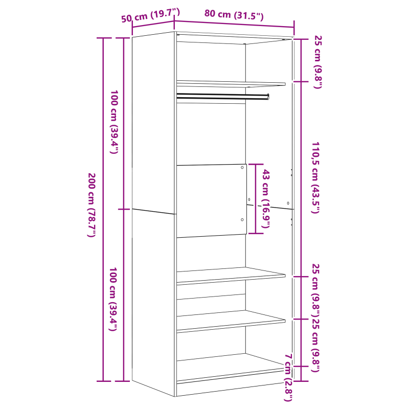 Гардероб с рафт Дъб 80 x 50 x 200 см Инженерно дърво