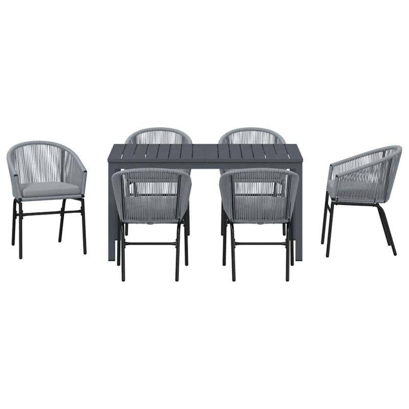 Начало Дом и градина Мебели Външни мебели Градински маси Комплект за хранене в градината 7 pcs Сив Полиратан