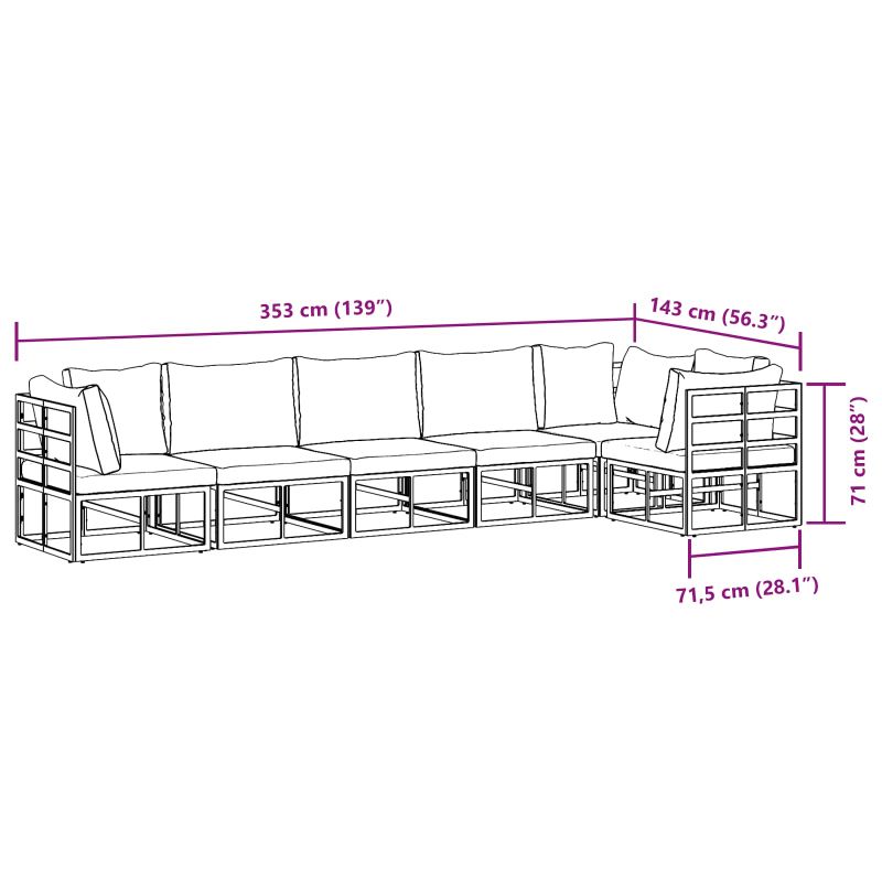 Градински Софа Комплект с възглавница 6 pcs Черно Алуминий
