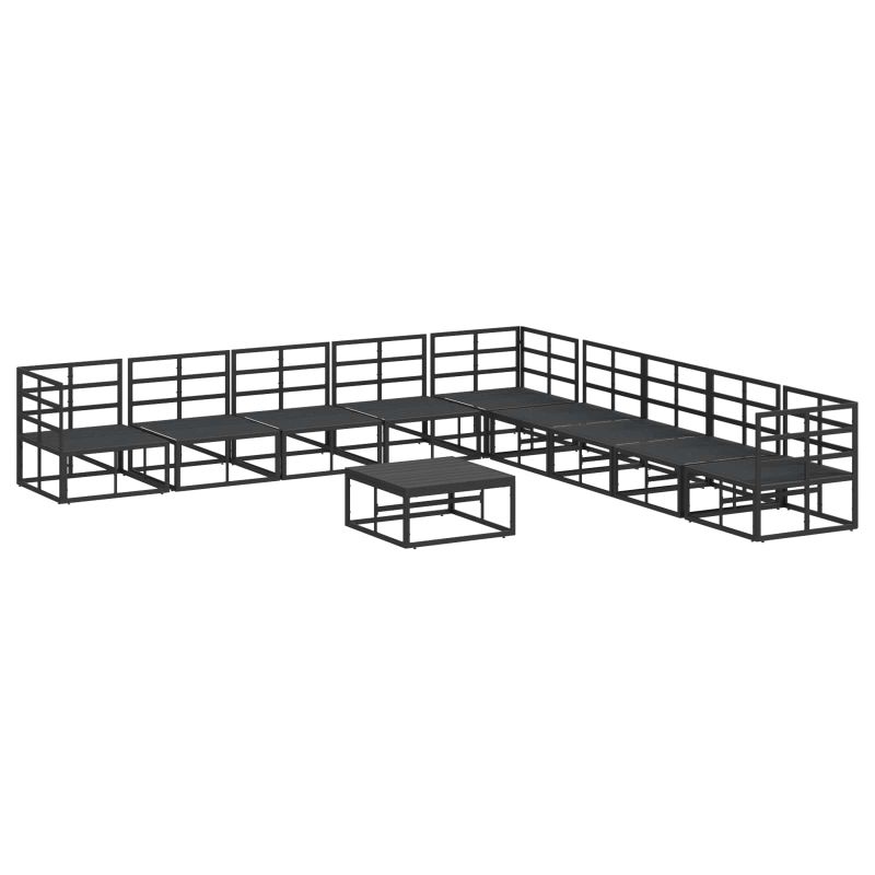 Градински Софа Комплект с възглавница 10 pcs Черно Алуминий