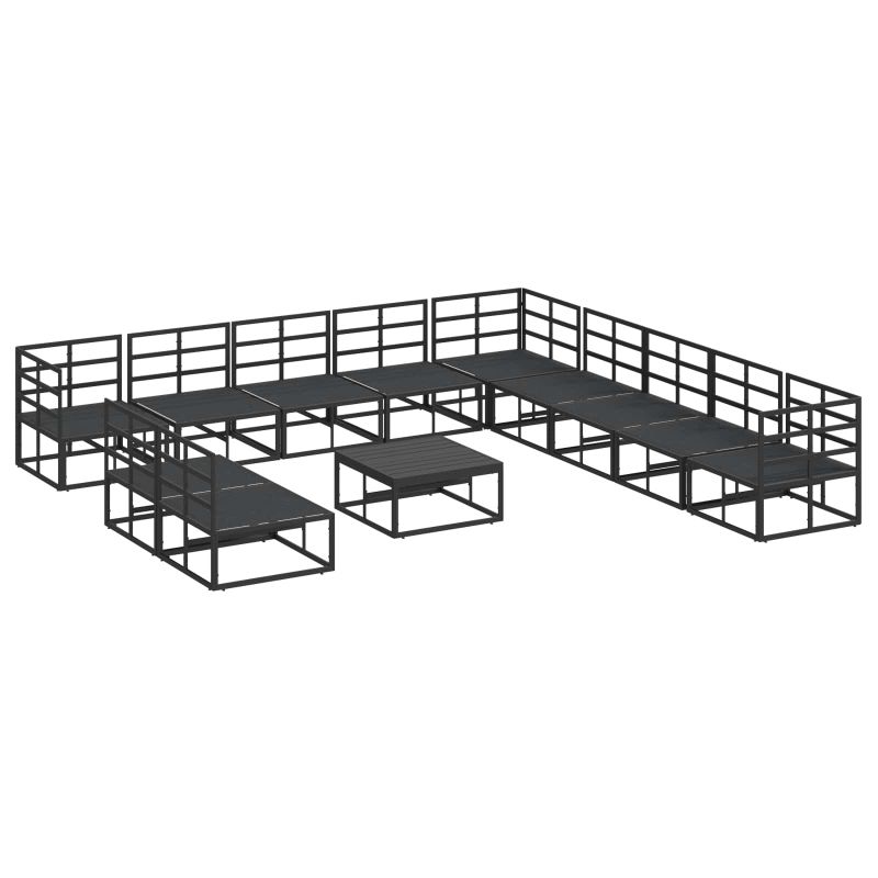 Градински Софа Комплект с възглавница 12 pcs Черно Алуминий