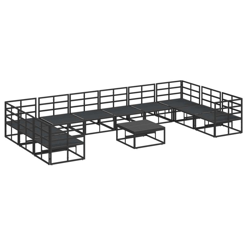 Градински Софа Комплект с възглавница 11 pcs Черно Алуминий