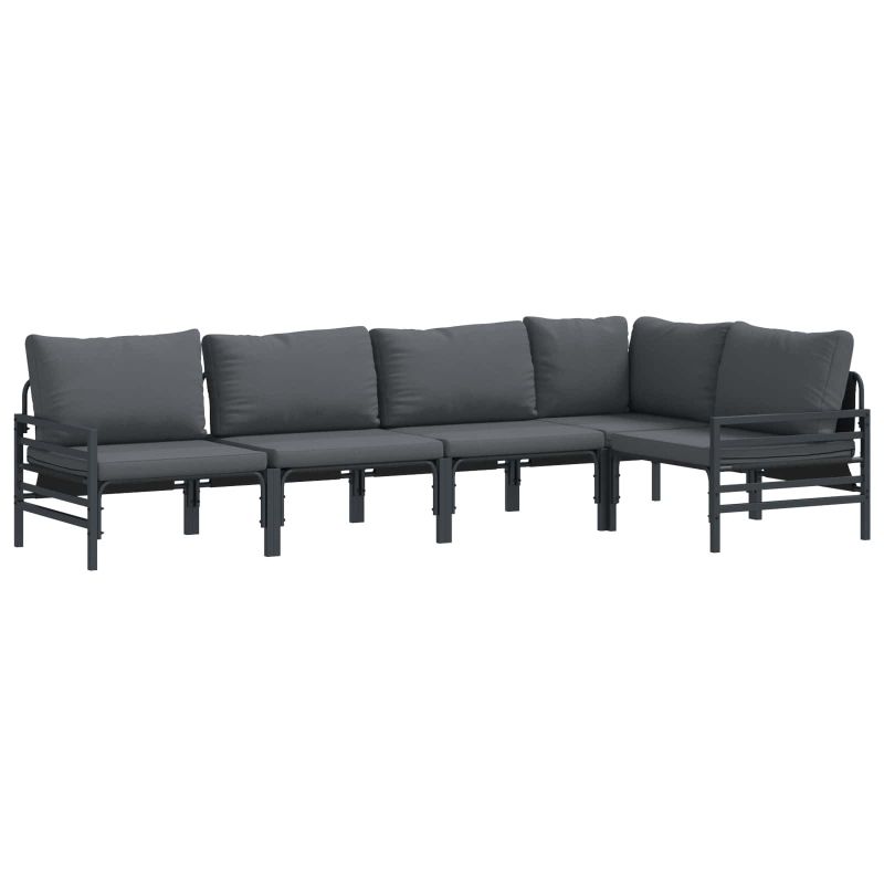 Градински Софа Комплект с възглавница 5 pcs Черно Стомана