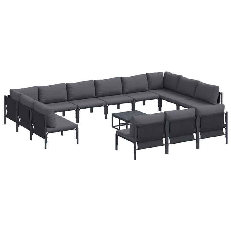 Градински Софа Комплект с възглавница 14 pcs Черно Стомана