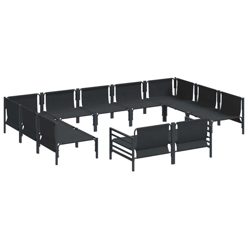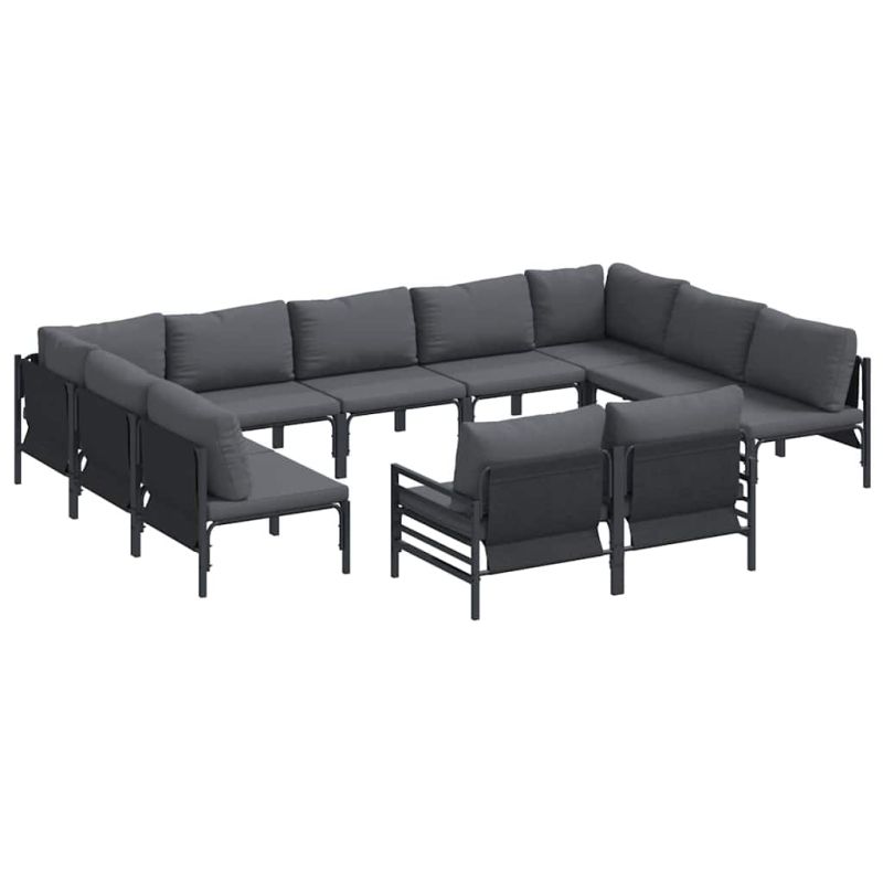 Градински Софа Комплект с възглавница 11 pcs Черно Стомана