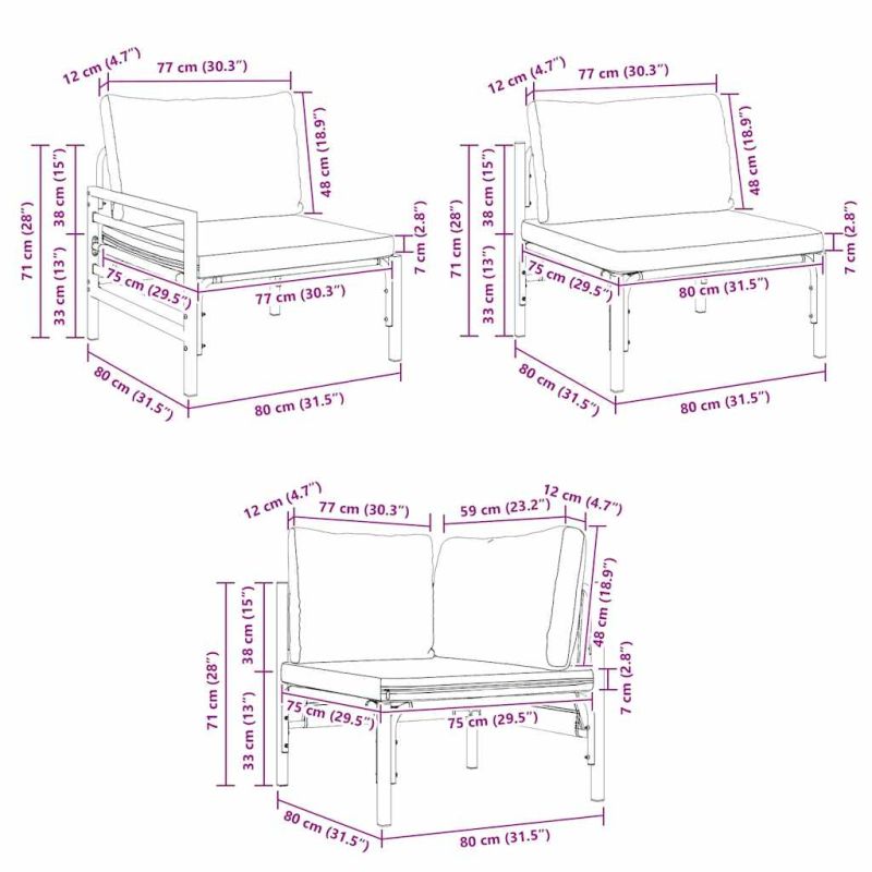 • 7 x Централен диван: 80 x 80 x 71 см (ДxШxВ)