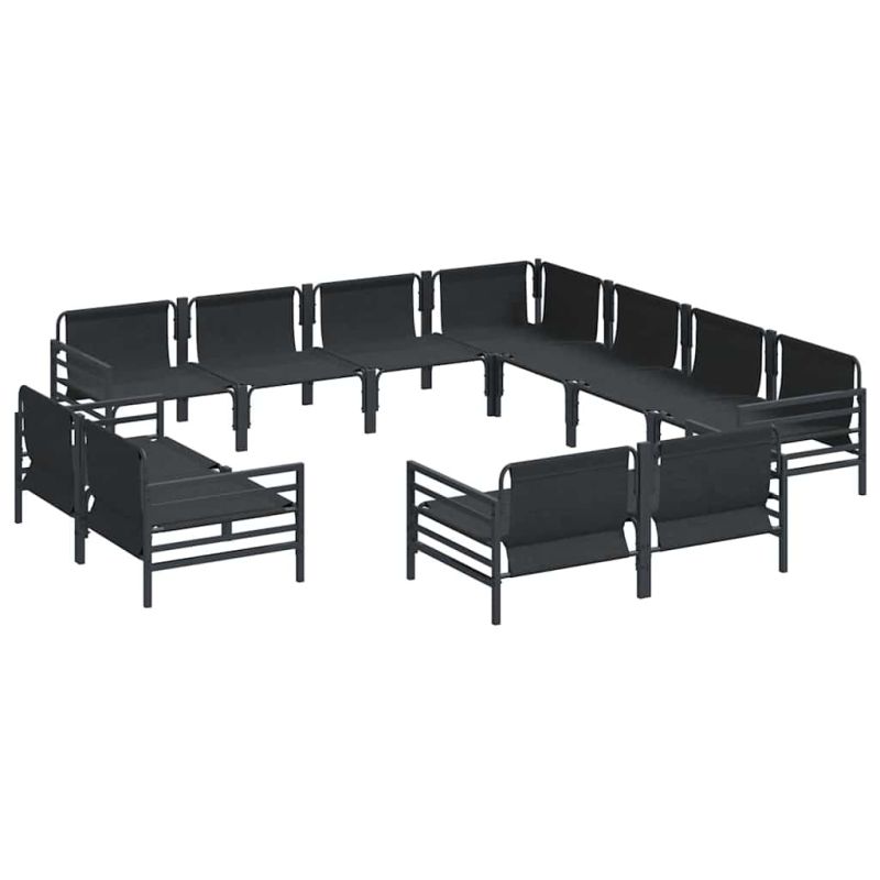 Градински Софа Комплект с възглавница 11 pcs Черно Стомана