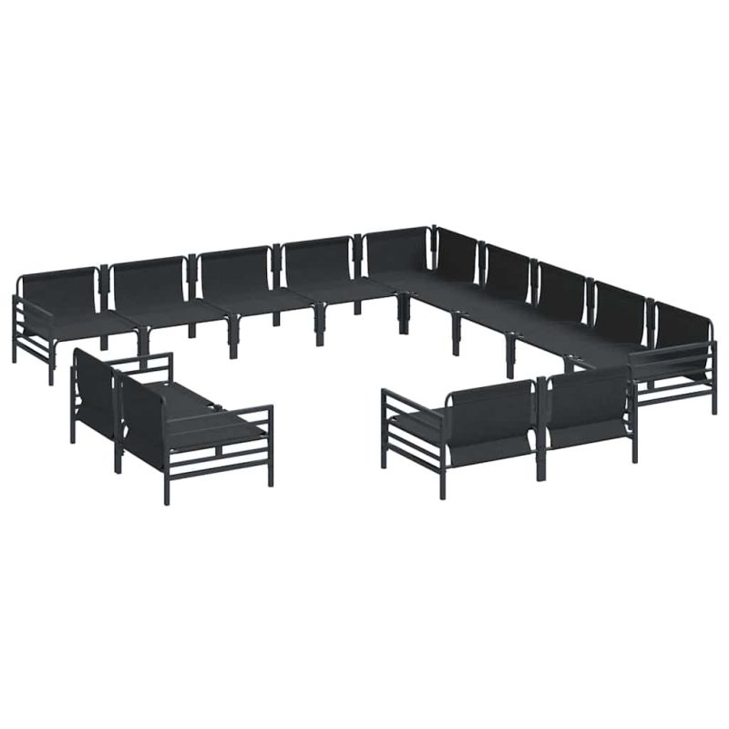 Градински Софа Комплект с възглавница 13 pcs Черно Стомана