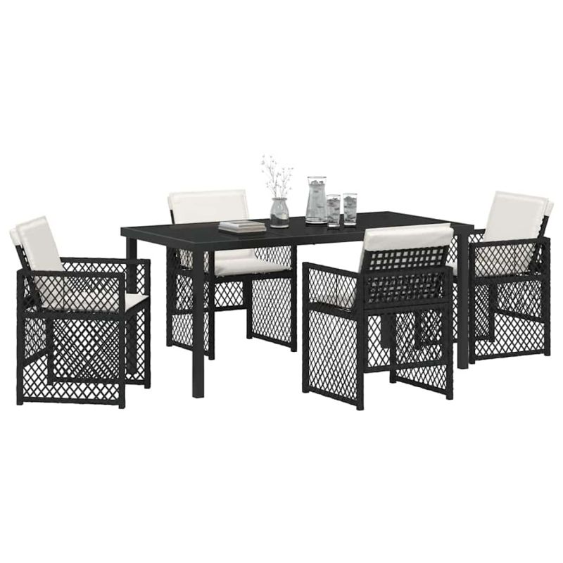 Комплект за хранене в градината 5 pcs Черно полиратан