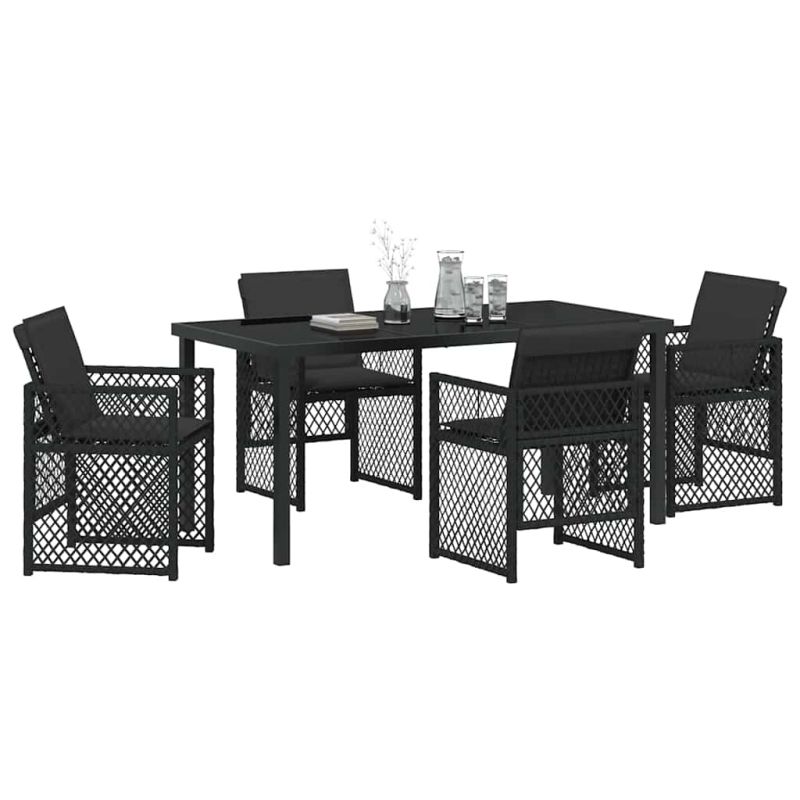 Комплект за хранене в градината 5 pcs Черно полиратан