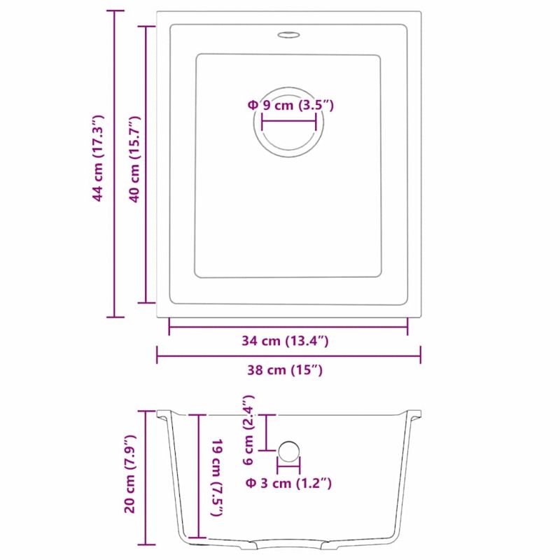 Кухненска мивка Черно 38 x 44 x 20 см Гранит