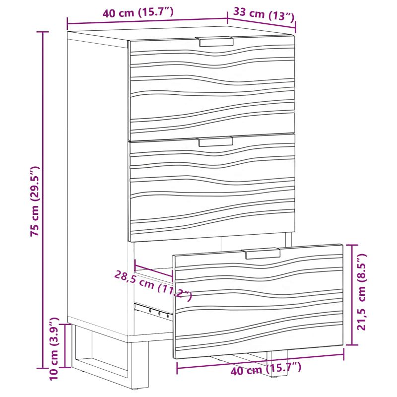 Този рустикален страничен шкаф наистина се откроява и е перфектен за добавяне на допълнително място за съхранение в всяка всекидневна. Има много яко текстурирано покритие с вълнообразни линии от масивна дървесина от манго, което му придава приятна рустикална атмосфера. Стилните черни железни крака завършват визията и правят шкафа да изглежда добре навсякъде. Можете да го ползвате и в трапезарии, комбинирайки стил с истинска полезност. Материал: Шкафът е направен от масивна дървесина от манго и инженерна дървесина, известни със своята здравина и издръжливост. В комбинация, тези материали издържат на износване, така че ще остане основна част в дома ви дълго време, изглеждайки рустикално стилно. Включени компоненти: Разполага с достатъчно места за съхранение на вашите ежедневни вещи. Чекмеджетата се плъзгат гладко, така че лесно можете да взимате необходимото. Здравите черни железни крака осигуряват стабилност и придават елегантен вид. Функционални характеристики: Създаден за практично съхранение, този шкаф предлага много пространство за организация на нещата и помага да поддържате дневната подредена. Многофункционален: Идеален за употреба в закрити пространства, особено в всекидневни. Рустикалният му вид работи с различни стилове, от уютен селски до модерен декор. Шкафът може да съхранява трапезарни принадлежности или да показва красиви елементи. Поддръжка: Просто го прашете редовно с мека, суха кърпа и ще изглежда свеж. Нужни са ви няколко души за сглобяване с отвертка и чук, следвайки инструкциите, за да бъде стабилен и да издържи във времето.