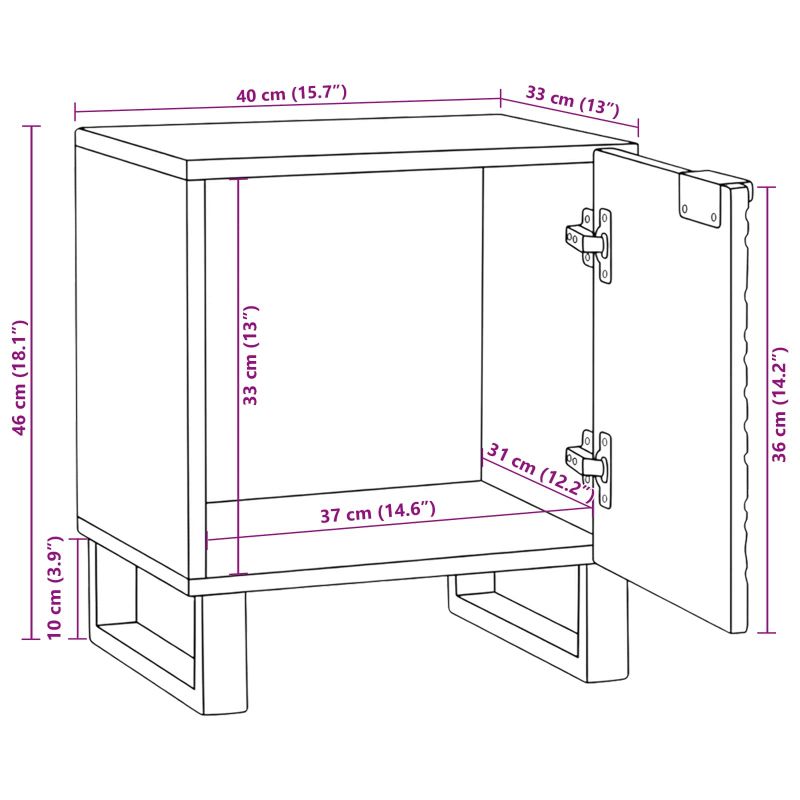 Това нощно шкафче е супер добре направено и добавя рустик чар и полезен дизайн. Компактният му размер го прави страхотно допълнение към всяка спалня, предоставяйки удобно място за предмети като лампи или будилници. Уникално проектирано, за да отговаря на интериори, които обичат естествения вид, това шкафче се отличава с гладка повърхност и естетически вид от масивна акациева дървесина, която ще се впише лесно в останалата част от мебелировката, добавяйки уют на пространството ви. Материална перфектност: Изработено от масивна акациева дървесина, предлага уникална здравина и дълготрайност. Природната текстура и гладката повърхност придават рустик чар, създавайки уютна обстановка в спалнята. Този избор на материал гарантира здравина за ежедневна употреба, без да жертва естетическата стойност. Функционално съхранение: Дизайнът включва достатъчно място за лични вещи, книги или спално бельо. Практичната функция улеснява организационния процес и предлага определено място за основните спални предмети. Неговата полезност го прави ценен добавка за тези, които искат да поддържат спалнята си подредена. Шикозно компактно: Размерите му (40 x 33 x 46 см) са идеални за малки стаи или ограничени пространства, перфектно балансиращи форма и функция. Компактният дизайн позволява да се впише в тесни ъгли, максимизирайки пространството без да жертва стилa. Рустик стил: Естествената красота на това шкафче добавя характер на спалнята, независимо дали е традиционна или модерна. Рустик стилът му в простота и елегантност добавя уникален щрих, който повишава декора. Лесно сглобяване: Проектирано за лесно сглобяване, шкафчето изисква само отвертка. Процесът на сглобяване е бърз и лесен, което го прави подходящо за всички, независимо дали са запалени по „Направи си сам“ проекти или не.