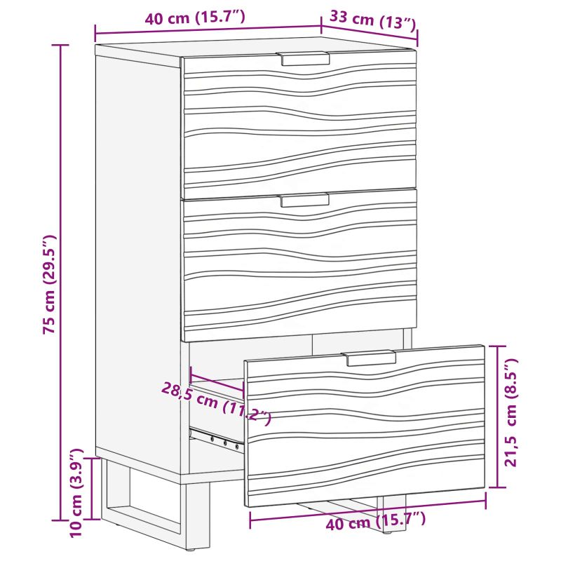 Този рустикален страничен шкаф наистина се откроява и е перфектен за добавяне на допълнително място за съхранение в всяка всекидневна. Има много яко текстурирано покритие с вълнообразни линии от масивна дървесина от манго, което му придава приятна рустикална атмосфера. Стилните черни железни крака завършват визията и правят шкафа да изглежда добре навсякъде. Можете да го ползвате и в трапезарии, комбинирайки стил с истинска полезност. Материал: Шкафът е направен от масивна дървесина от манго и инженерна дървесина, известни със своята здравина и издръжливост. В комбинация, тези материали издържат на износване, така че ще остане основна част в дома ви дълго време, изглеждайки рустикално стилно. Включени компоненти: Разполага с достатъчно места за съхранение на вашите ежедневни вещи. Чекмеджетата се плъзгат гладко, така че лесно можете да взимате необходимото. Здравите черни железни крака осигуряват стабилност и придават елегантен вид. Функционални характеристики: Създаден за практично съхранение, този шкаф предлага много пространство за организация на нещата и помага да поддържате дневната подредена. Многофункционален: Идеален за употреба в закрити пространства, особено в всекидневни. Рустикалният му вид работи с различни стилове, от уютен селски до модерен декор. Шкафът може да съхранява трапезарни принадлежности или да показва красиви елементи. Поддръжка: Просто го прашете редовно с мека, суха кърпа и ще изглежда свеж. Нужни са ви няколко души за сглобяване с отвертка и чук, следвайки инструкциите, за да бъде стабилен и да издържи във времето.