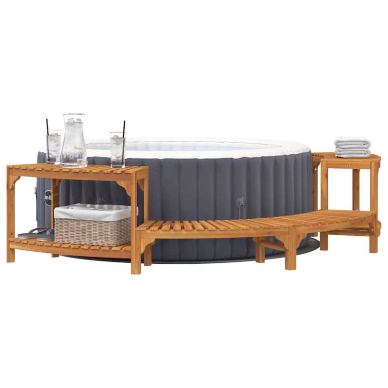 Ако искаш да добавиш стил и уют в спа зоната си, тази полукръгла обградка за гореща вана на открито е точно за теб. Направена е от здрава акациева дървесина, която не само е устойчива, ами и изглежда страхотно във всяка спа конфигурация. Тази обградка създава уютно пространство за релаксация и е идеална както за покани с приятели, така и за моменти насаме. Масивна Акациева Дървесина: Тази обградка е направена от качествена масивна акациева дървесина, която изглежда страхотно и е устойчива на всякакво време. Освен това е зелена, придавайки естествен и елегантен вид на пространството ти. Подходяща за Различни Спа: Не е нужно да се тревожиш за външни или вградени помпи; тази обградка се вписва идеално. Гъвкавият ѝ дизайн работи с много конфигурации на горещи вани. Водоотблъскващи Характеристики: С водоустойчиви и UV устойчиви свойства, тази обградка е направена да издържи на всеки сезон и да изглежда супер дълго време. Минималистичен Дизайн: Простият ѝ дизайн поддържа всичко изчистено и придава спокойствие на откритото пространство. Страхотен избор за модерен стил, който оценява простотата над претрупания вид. Поддръжка и Сглобяване: Нужни са ти двама души и отвертка, но е лесно с правилните инструкции. Поддържай я чиста и я покривай, когато не я ползваш, за да ѝ удължиш живота.