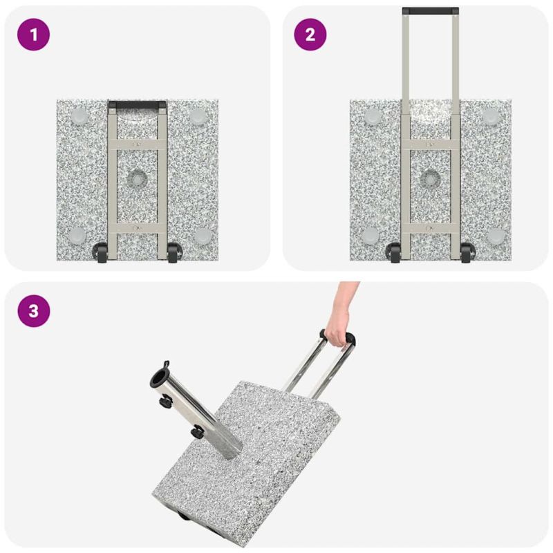 Основата за чадър е як, но стилен аксесоар, който подобрява атмосферата в градината ти. С модерен и семпъл стил, тя перфектно се вписва във всяко открито пространство, запазвайки нещата прости и елегантни. Здравата конструкция гарантирува, че чадърът стои стабилно, осигурявайки ти зашеметяваща сянка, когато слънцето е ярко. Красивият й вид идва от гранита, който добавя луксозен акцент на терасата или градината, идеално се съчетава с мебелите ти навън. Гранитен материал: Тази основа за чадър е направена от ясен гранит, който е здрав и стилен – способен да устои на всякакви метеорологични условия. Гранитът не само изглежда шик, но е и дълготраен през сезоните. Елементи от неръждаема стомана: С добавените части от неръждаема стомана, основата има модерен вид, който прекрасно допълва естественото очарование на гранита. Тези елементи сигурно държат основата стабилна за открито. Колела: Идва с колела, което прави преместването на основата детска игра. Без значение дали искаш да промениш настройката в градината или да намериш идеалното място за сянка, колелата ти позволяват лесен трансфер. Стил и употреба: Тази основа е с модерен вид, идеално за слънчеви тераси и градини. Семплите линии й придават минималистичен ръб и я правят подходяща за различни декорации, задържайки чадърите стабилно. Лесно сглобяване: Нужно е само едно лице, за да я сглоби, правейки процеса прост и лесен. Ясни инструкции те напътстват при монтажа, позволявайки ти бързо да я превърнеш в удобен аксесоар на открито.