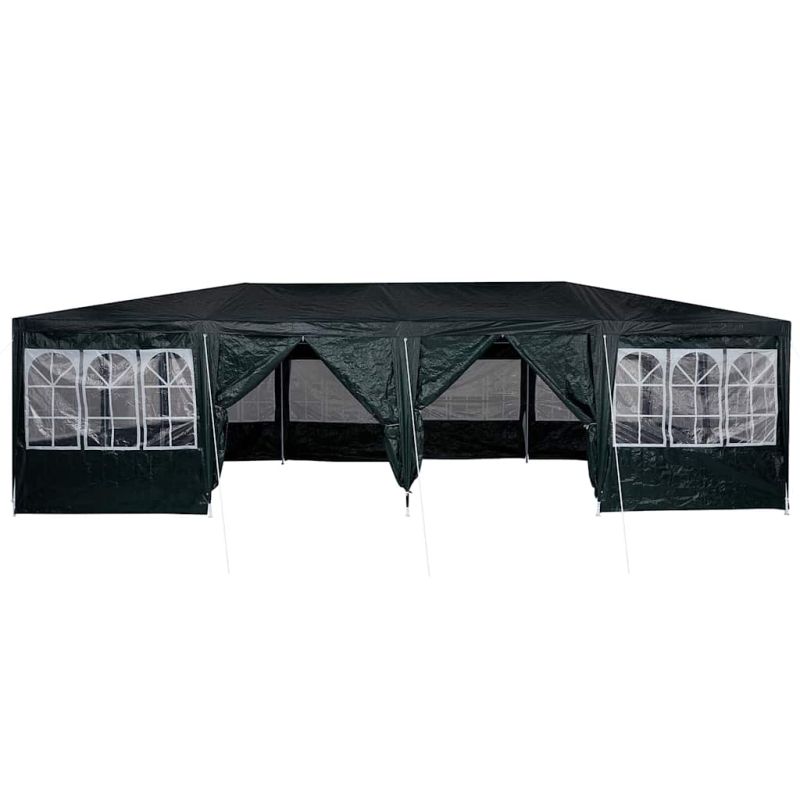 Парти шатър Зелен и бял 800 x 400 x 266 см Полиестер и стомана