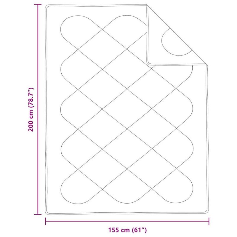 Този дувет от микрофибър е направен да допълва всяка съвременна спалня с елегантни линии и минималистичен стил. Перфектен за онези, които обичат удобството, той обещава страхотно спално изживяване. Бялата му боя и гладката текстура значително подобряват визията на всяка стая. Без значение дали предпочиташ семпло или предпочиташ малко повече детайли, този дувет ти предлага и уют, и стил, като те подканва да се насладиш на спокойна почивка. Гладка полиестерна повърхност Този дувет е с мека полиестерна повърхност, нежна към кожата. Премиум качеството на материала осигурява дълготрайност за ежедневно ползване и запазва стилната визия. Гладката текстура е идеален избор за любителите на комфорта. Равномерно разпределение на пълнежа Квадратният шев с размери 29 x 29 см гарантира равномерно разпределение на микрофибърния пълнеж. Такъв дизайн предотвратява образуването на бучки, запазвайки пухкавия вид на дувета. Достъпен през всички сезони Дизайнът осигурява комфорт през цялата година с лек микрофибър и 350 gsm пълнеж, който е дишащ и предлага топлина, когато е нужно. Идеален е за различни климатични условия и лесно се адаптира към нуждите на тялото ти. Лесна поддръжка Подходящ за машинно пране на 30°C, този дувет запазва формата и цвета си, дори след множество пранета, предлагащ лесна поддръжка и дълготрайност. Доставка с вакуум паковане Доставеният под вакуум дувет осигурява лесна манипулация. След разопаковане, просто потупай, за да възстановиш оригиналната му форма, предлагайки бърз комфорт.