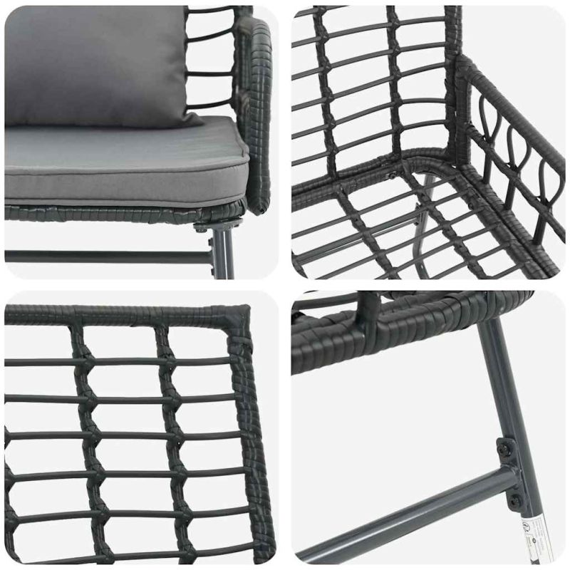 Този стилен комплект градински мебели е перфектен за открито, съчетавайки съвременен дизайн с удобство. Изработен е от полиратан и полиестер, идеален за освежаване на терасата или градината. Независимо дали каните гости за парти, или просто се отпускате след дълъг ден, този комплект предлага комфорт и стил, който повдига всяко открито пространство. Материали: Изработен от устойчив полиратан с тъкана текстура, този комплект е подходящ както за природни, така и за градски пространства. Лек и свеж, той е привлекателен и издръжлив на слънце и дъжд. Възглавниците с полиестер осигуряват комфорт. Включени компоненти: Комплектът има ергономични облегалки и подлакътници от полиратан за комфорт и стил, а всеки елемент е с подвижни възглавници, свързани с цип за лесно почистване. Функции/Дейност/Дизайн: Модерният занаят на комплекта позволява подреждане според пространството и случая. Стоманената рамка с прахово покритие е устойчива и комбинира сила с елегантност. Препоръчителна употреба: Подходящ е за градини и тераси, адаптира се лесно към различни открити обстановки. Идеален е за неформални събирания, по време на вечеря или просто за релаксация на слънце. Поддръжка и грижи: За поддръжка на добрия вид е нужна минимална грижа, просто използвайте защитни покривала, когато не го ползвате. Редовно почистване с влажна кърпа е достатъчно, а подвижният дизайн на възглавниците позволява дълбочинно почистване.
