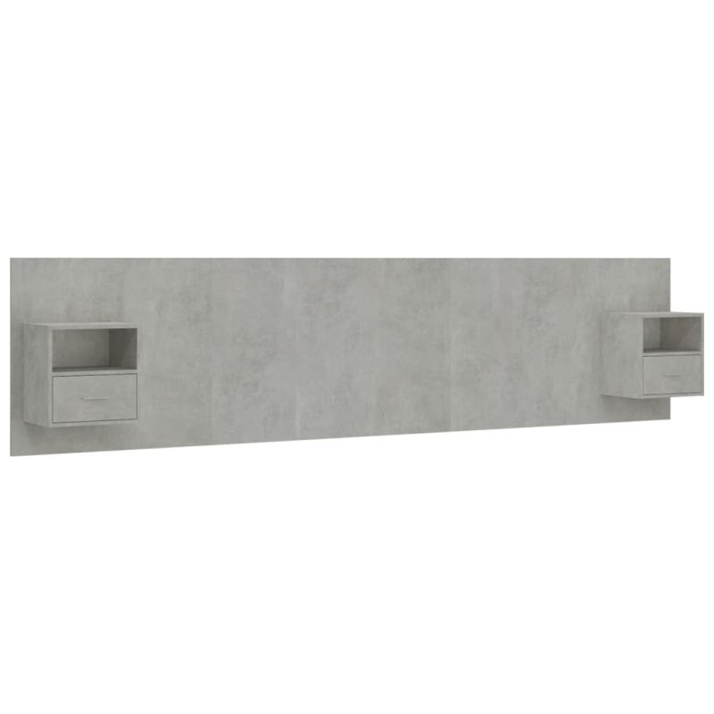 Горна табла за легло с шкафчета, бетонно сива, инженерно дърво