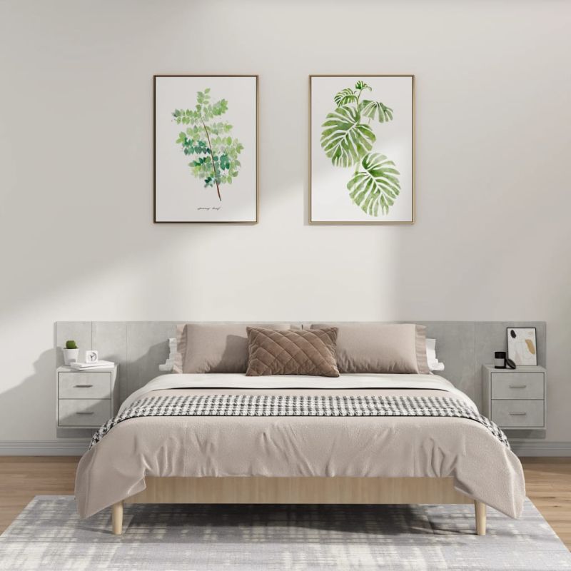 Табла за легло с шкафчета бетонно сиво инженерно дърво