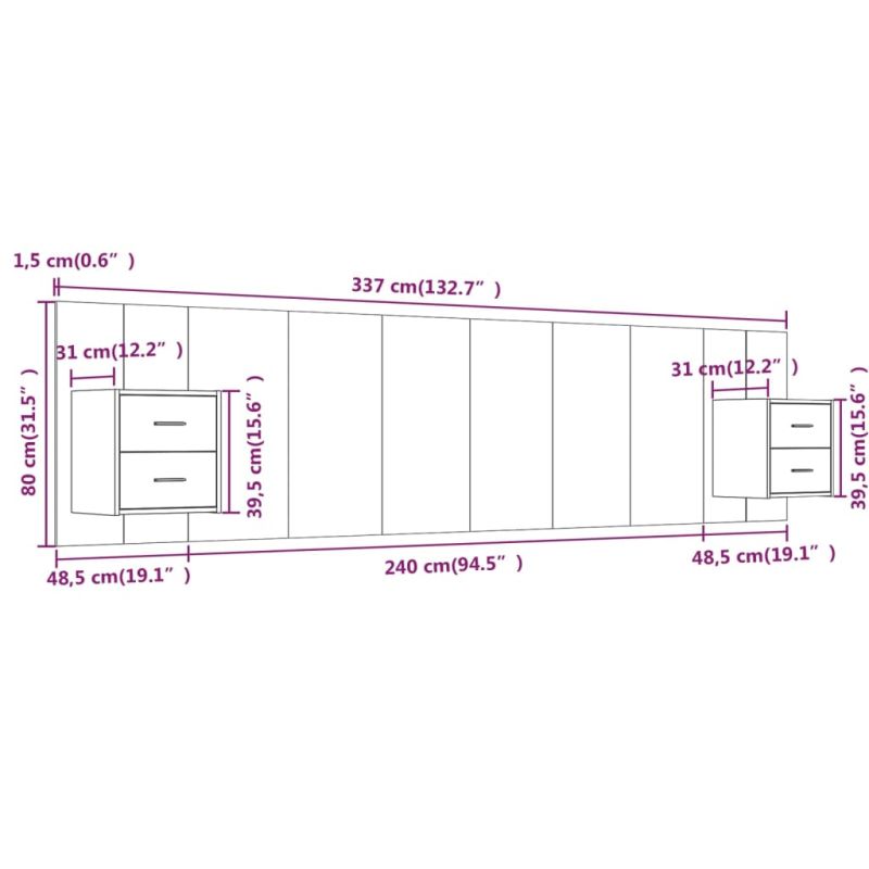 Здравата табла за легло с шкафчета и класически дизайн придава завършен вид на рамката на леглото и е подходяща за всяка спалня. Издържлив материал: Инженерната дървесина е с изключително качество с гладка повърхност и също така се отличава със здравина, стабилност и устойчивост на влага.Дизайн за стенен монтаж: Окачените нощни шкафчета и таблата могат да бъдат монтирани на стена. По този начин можете да увеличите максимално площта на пода и да поддържате пространството подредено.Място за съхранение: Нощното шкафче разполага с просторно място за съхранение, което ви позволява да държите нещата си организирани. Внимание:Винт(ове) и щепсел(и) за вътрешността на стената не са включени. Търсете и използвайте винт(ове) и дюбел(и), подходящи за вашите стени. Ако не сте сигурни, потърсете професионална помощ. Прочетете и следвайте внимателно всяка стъпка от инструкциите.