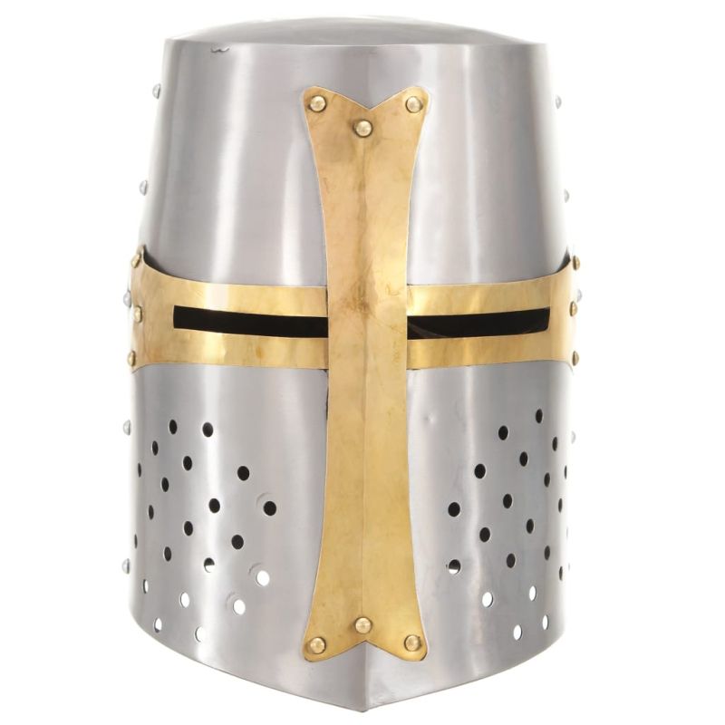 Средновековен рицарски шлем Кръстоносец ЛАРП сребрист стомана
