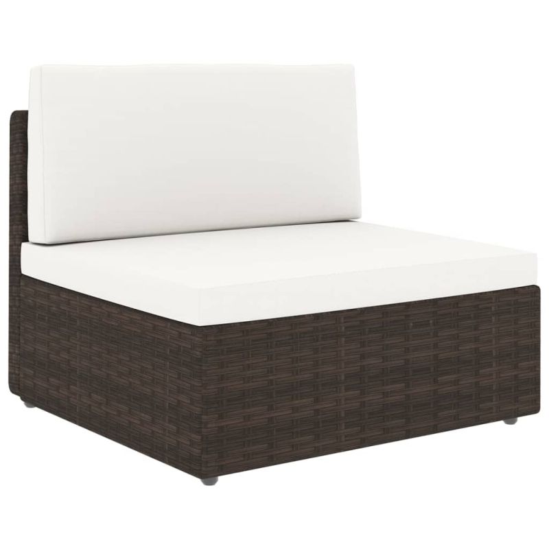 Градински комплект с възглавници, 9 части, кафяв полиратан