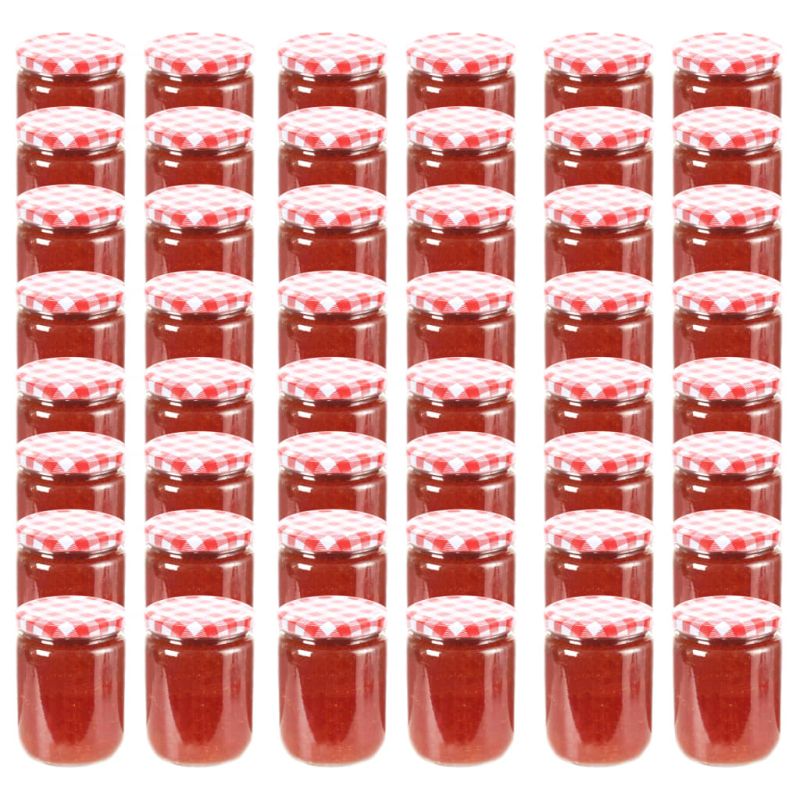 Стъклени буркани за сладко с бяло-червени капачки 48 бр 230 мл