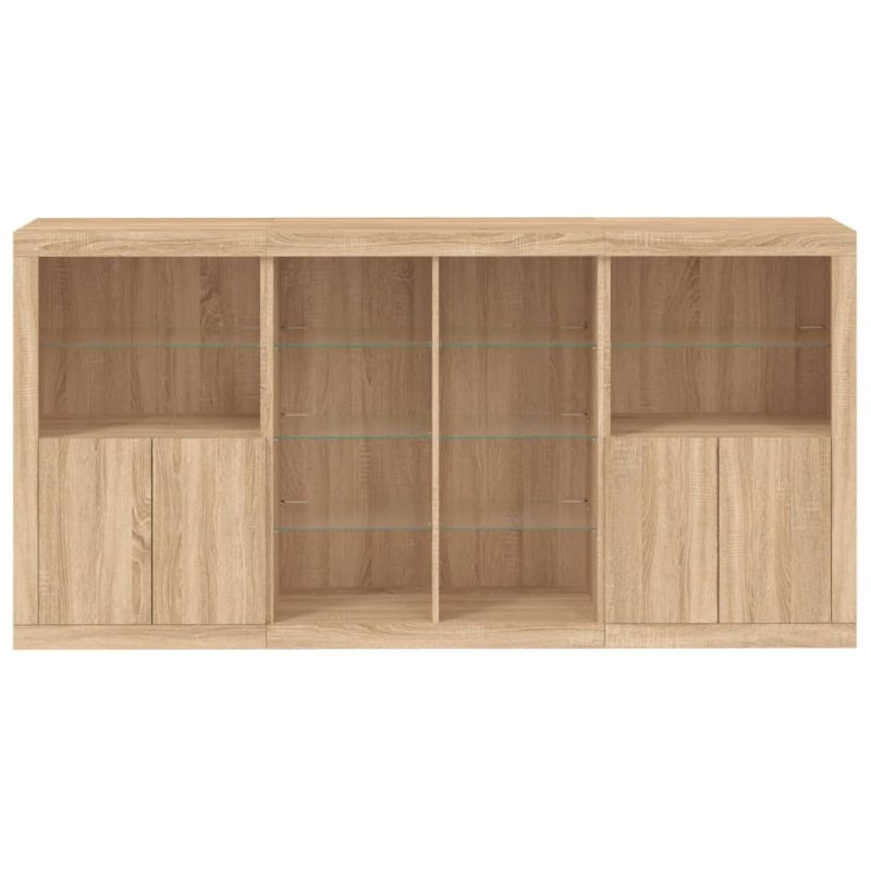 Сайдборд с LED светлини, сонома дъб, 202x37x100 см