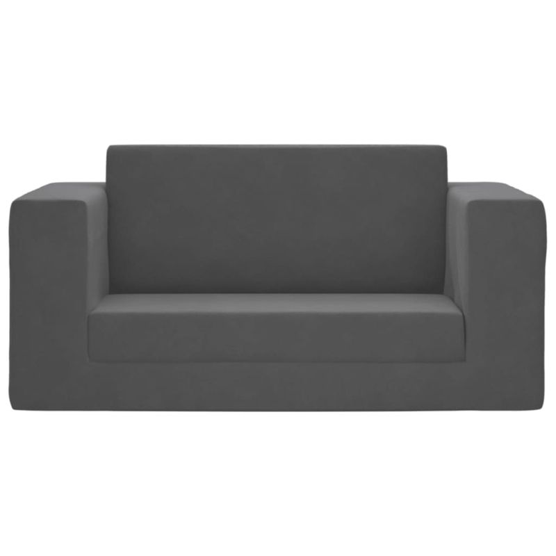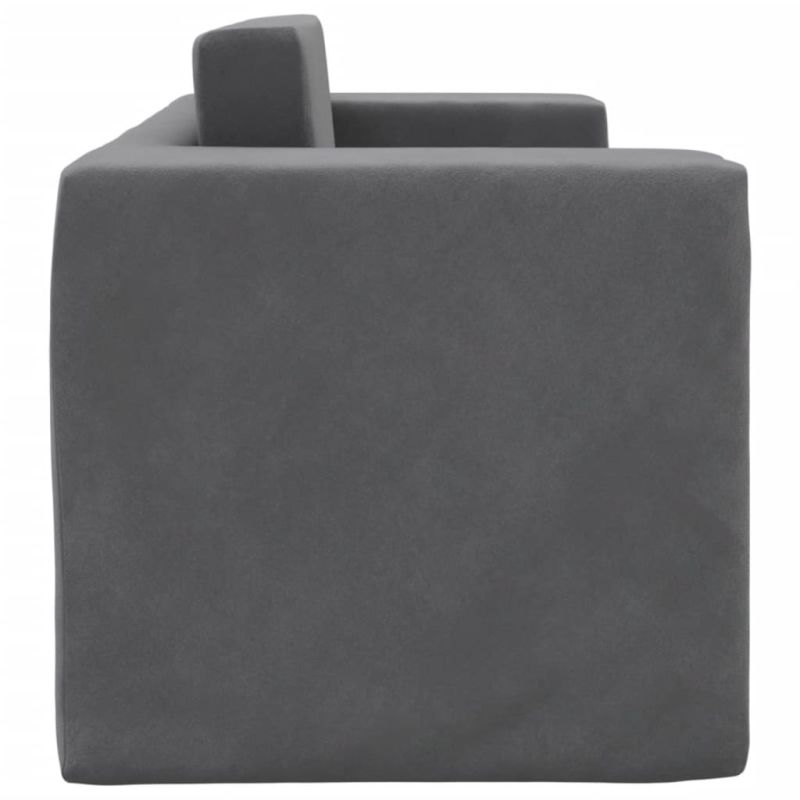 Детско диванче-легло, 2-местно, антрацит, мек плюш