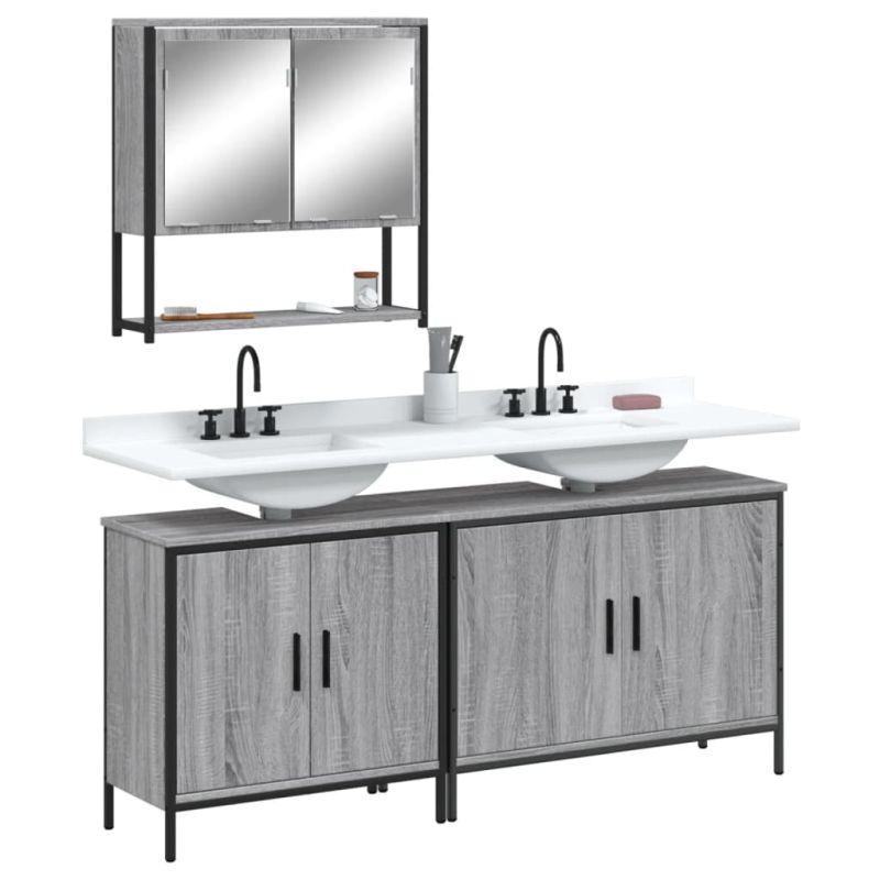 Комплект мебели за баня от 3 части сив сонома инженерно дърво