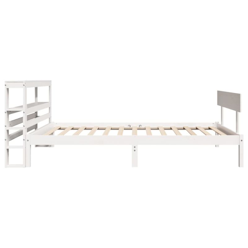 Насладете се на добър нощен сън с тази дървена рамка за легло! Тя ще бъде практично и декоративно допълнение към вашия интериор. Масивна борова дървесина: Масивната борова дървесина е красив естествен материал. Боровата дървесина е с продълговати шарки, а чеповете придават на материала характерния му рустик вид.Шперплатови ламели: Шперплатовите ламели осигуряват добро разпределение на тежестта, осигурявайки на вашия матрак така необходимата опора и дишане.Достатъчно място за съхранение: Тази елегантна табла на леглото разполага с два удобни рафта, предлагащи достатъчно място за съхранение, за да държите всичките си основни вещи през нощта леснодостъпни.Свободностояща табла: Свободностоящата табла предлага безпроблемно решение за лесно поставяне и препозициониране без необходимост от монтаж на стена. Добре е да се знае: Към това легло не е включен матрак. Ние предлагаме разнообразна селекция от матраци. Можете да проверите нашия магазин за подходящ матрак.