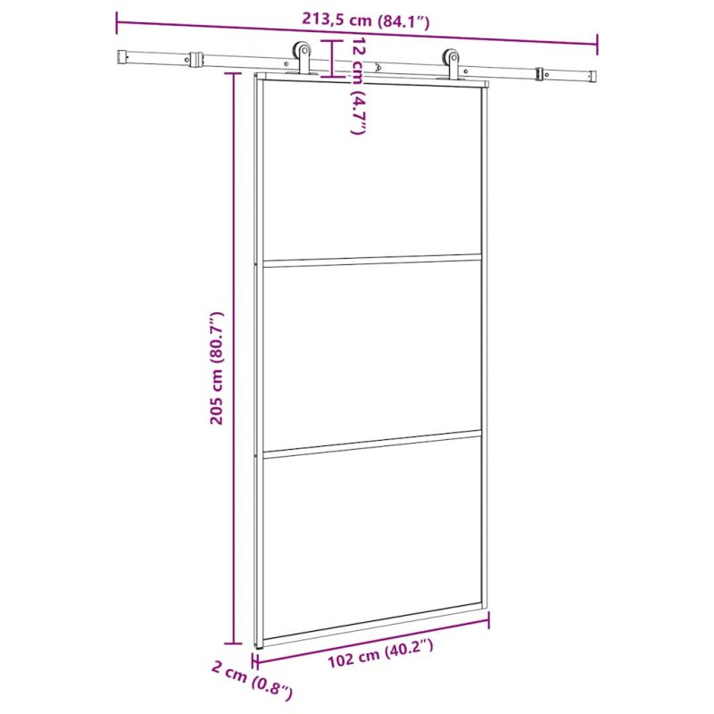 Плъзгаща се врата с механизъм 102x205 см ESG стъкло и алуминий