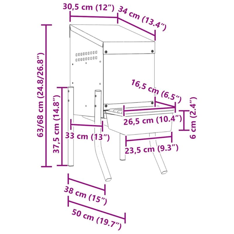 Кутия за гнездене за пилета с 1 отделение и крака, поцинкована стомана