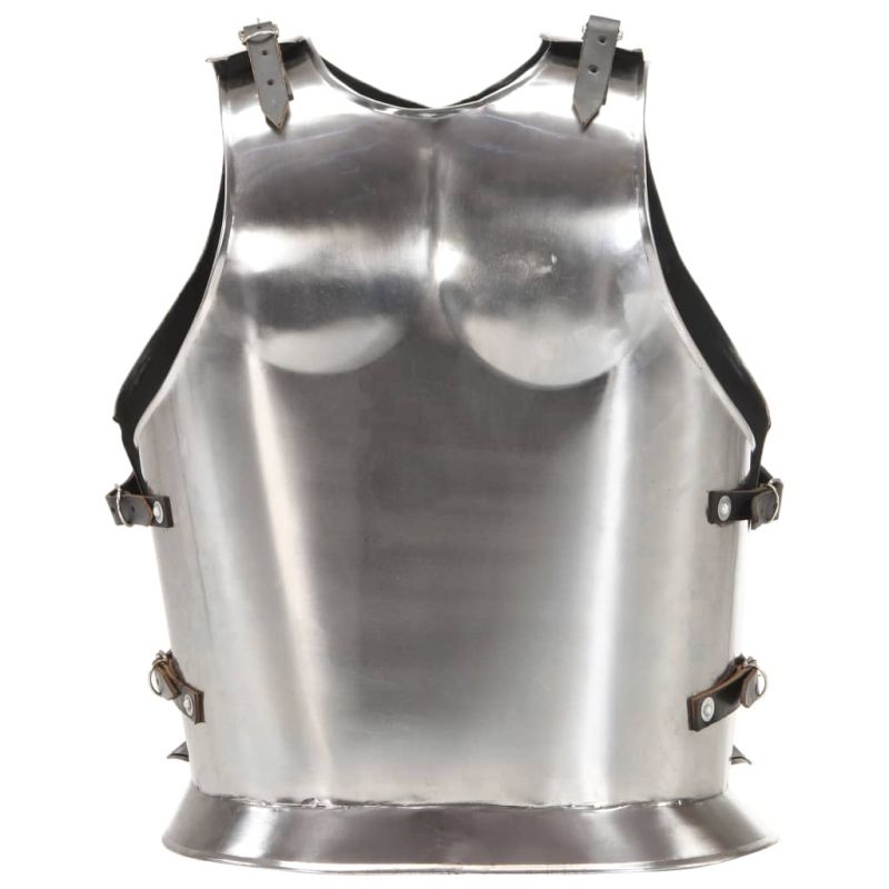 Тази антична военна бронежилетка е перфектна за ЛАРП (ролева игра на живо), косплей, партита на историческа тема, Хелоуин парти, театрални реквизити и исторически възстановки. Тя също би могла да бъде атрактивна украса. Тази бронежилетка, наричана също броня Лорика Мускулата, е точно копие на оригинална римска военна бронежилетка, която осигурява защита както отпред, така и отзад. Тя е напълно удобна за носене и е оборудвана с регулируеми кожени каишки за удобно прилепване. Бронежилетката съчетава античен стил и здрави материали в привлекателна броня. Освен това е изработена от стомана с дебелина 18 gauge с полирано покритие.