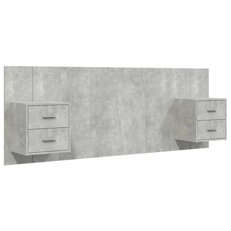 Горна табла за легло с шкафчета, бетонно сива, инженерно дърво