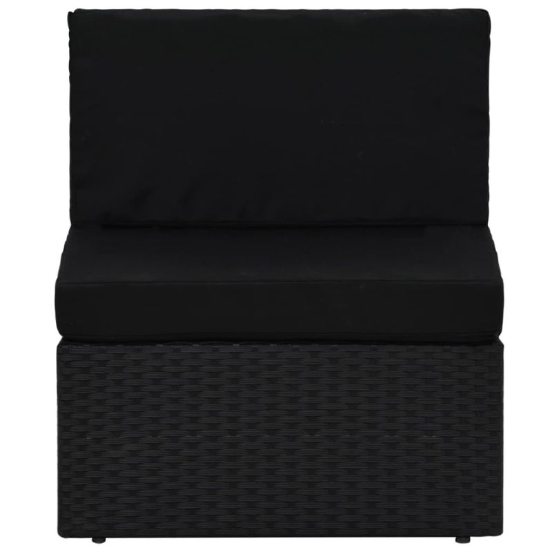 Градински комплект с възглавници, 10 части, полиратан, черен