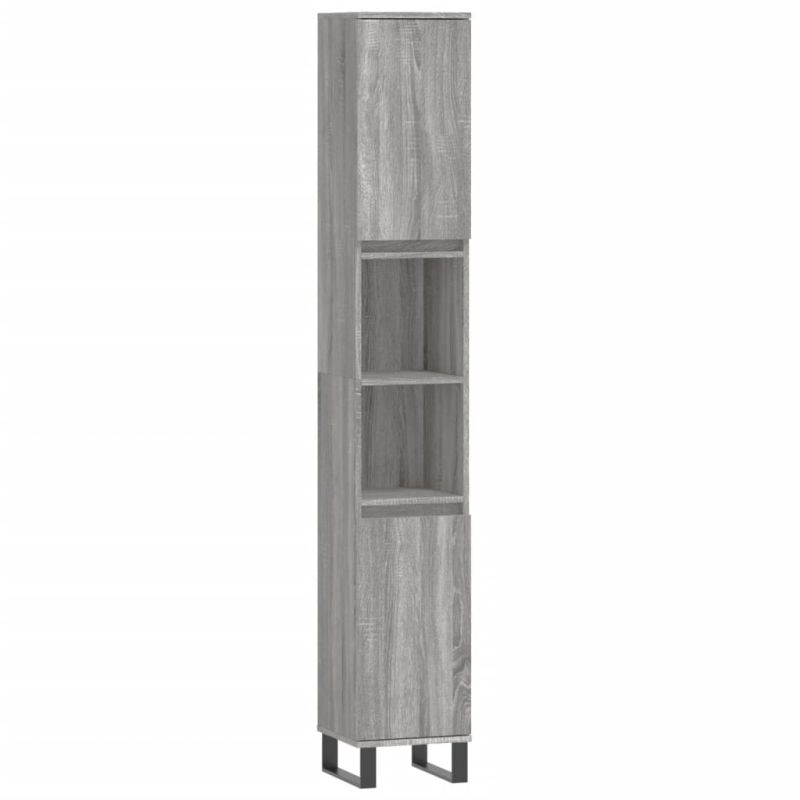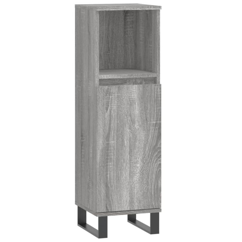 Комплект мебели за баня от 3 части сив сонома инженерно дърво