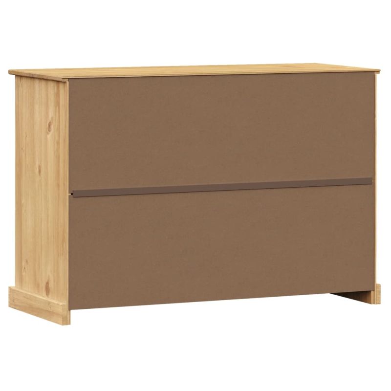 Ако не разполагате с достатъчно пространство, но имате нужда от повече място за съхранение, този компактен и стилен сайдборд е тук, за да ви помогне! Масивна борова дървесина: Масивната борова дървесина е красив естествен материал. Боровата дървесина е с продълговати шарки, а чеповете придават на материала характерния му рустик вид. Изработен от масивна борова дървесина, шкафът за съхранение е издръжлив и стабилен.Просторно и функционално място за съхранение: Отличаващ се с чекмеджета и отделения, бюфетът предлага достатъчно място за организиране на вещите ви. Освен това има множество приложения. Сайдбордът може да се използва и като бюфет, кухненски бюфет или страничен шкаф за хол или коридор.Лесен за поддръжка: Дървеният шкаф се почиства лесно с влажна кърпа и изисква по-малко поддръжка.Метални дръжки: Шкафът за съхранение с чекмеджета се доставя с метални дръжки, които улесняват отварянето и затварянето на шкафа, като същевременно добавят допълнителна красота. Внимание:За предотвратяване на преобръщане този продукт трябва да се използва с предоставения анкер за стена.