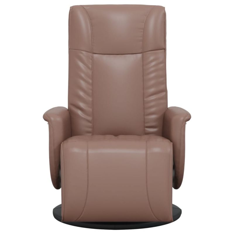 Търсите стол за пълноценна почивка след натоварен ден? Този удобен фотьойл за облягане е идеалният избор! Функция за ръчно накланяне: Този накланящ се стол е специално проектиран с функция за накланяне, така че да можете да регулирате облегалката и поставката за крака според вашето удобство. Облегалката може да се накланя от 105 до 125 градуса.Завъртане на 360 градуса: Фотьойлът може да се завърта свободно на 360 градуса, което му придава допълнителна гъвкавост.Удобно седене: Дебело подплатената седалка, облегалката, подпората за крака и широките подлакътници, покрити с текстил, осигуряват уютно и топло усещане, което ви кара да се чувствате като в прегръдка, докато седите. Изкуствената кожа е много издръжлив материал. Устойчива е на петна, което я прави лесна за почистване с влажна кърпа. Гладката повърхност също така придава луксозен вид и красотата на естествената кожа.Здрава и стабилна рамка: Рамката, изработена от шперплат и метал, осигурява здрава структура и стабилност. Този накланящ се фотьойл е удобен и издръжлив. Максимално 110 кг на седалка. Съобразете се с риска от открит огън и други източници на силна топлина в близост до продукта.