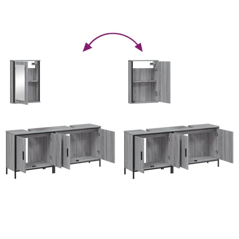Комплект мебели за баня от 3 части сив сонома инженерно дърво